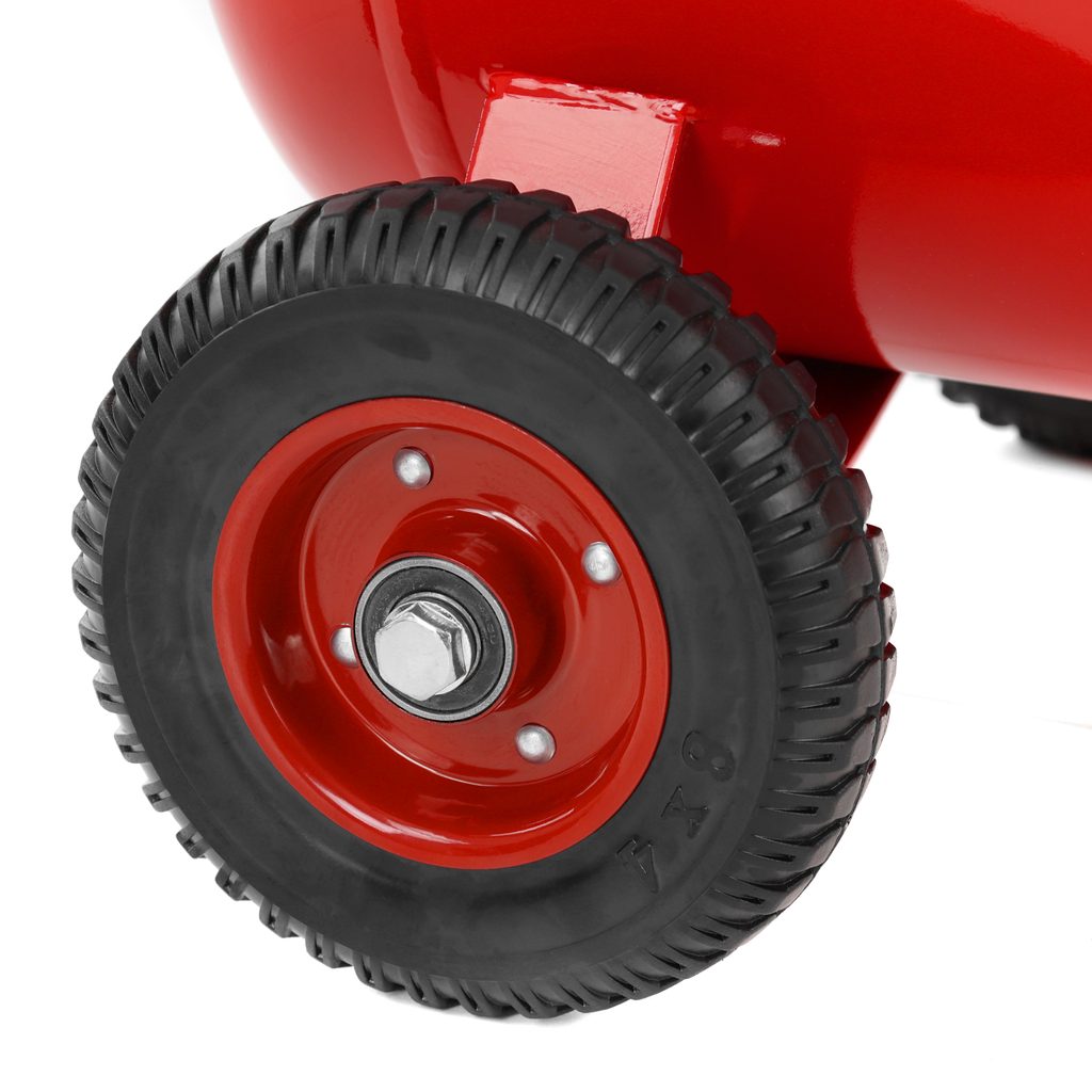 Stroj je vybavený veľkou 100-litrovou nádržou, umožňuje prácu s vyšším objemom vzduchu a stabilným tlakom až 8 barov. Kompresor je postavený na robustnom podvozku s kolieskami pre jednoduchú manipuláciu, predné kolesá sú navyše opatrené brzdou pre väčšiu stabilitu.