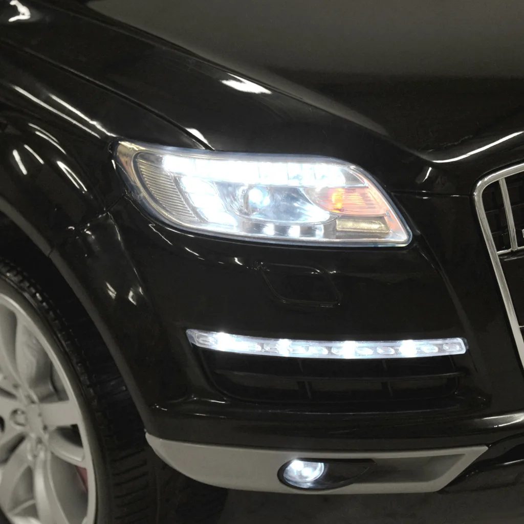Rozmery 119 x 66 x 58 cm poskytujú dostatok priestoru pre pohodlné sedenie. Autíčko má vstavaný MP3 prehrávač, predné a zadné svetlá a rádio, takže si deti môžu jazdu užiť naplno. Vďaka kvalitnej konštrukcii a prepracovaným detailom vyzerá ako skutočný automobil Audi Q7.